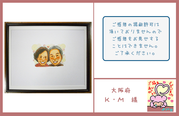 今回、祖母の米寿祝いのプレゼントで利用させて頂きましたが、大変心温まる似顔絵に仕上げて頂けました。